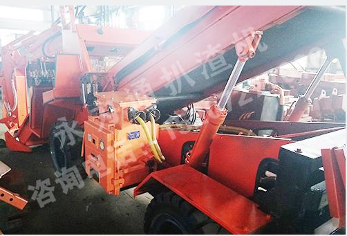 2、輸送系統(tǒng),為適應多分枝巷道工作環(huán)境,可配裝折疊式輸送架,通過控制油缸的伸縮來實現(xiàn)輸送架折疊,以調(diào)節(jié)整機長度,方便扒渣機在巷道內(nèi)轉彎、轉場。